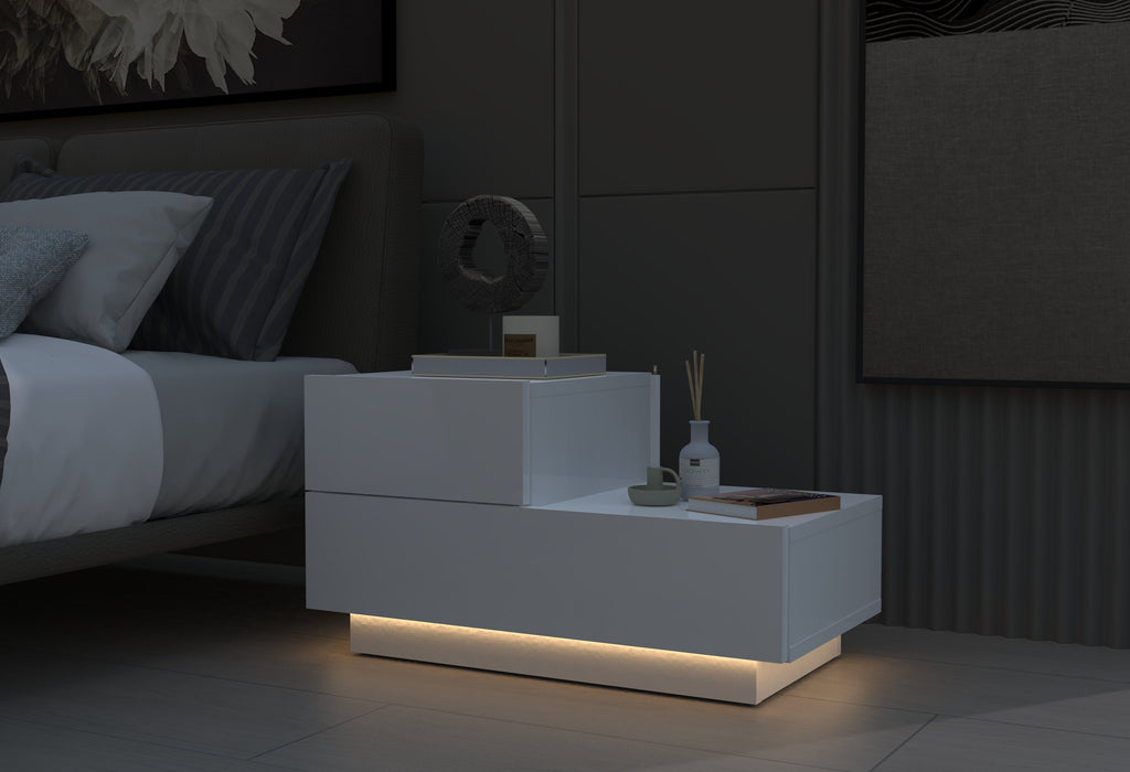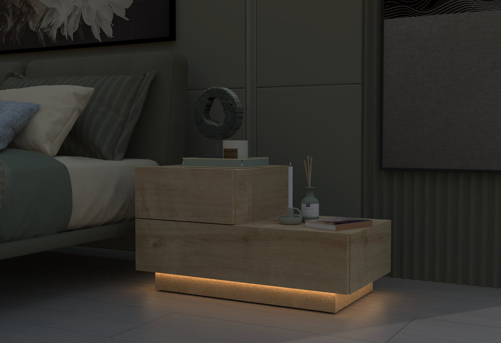 Der Kayra KMD002 Nachttisch vereint hochwertiges Design mit praktischer Funktionalität. Gefertigt aus robuster 18 mm Spanplatte, überzeugt er durch Stabilität und Langlebigkeit. Wählen Sie aus vier eleganten Farbvarianten – Schwarz, Anthrazit, Weiß und Saphir-Eiche – und passen Sie ihn perfekt an Ihr Schlafzimmer an. Mit integrierter LED-Beleuchtung schafft er zusätzlich ein stimmungsvolles Ambiente. Ideal für alle, die modernes Design und praktische Nutzung in einem Möbelstück kombinieren möchten.