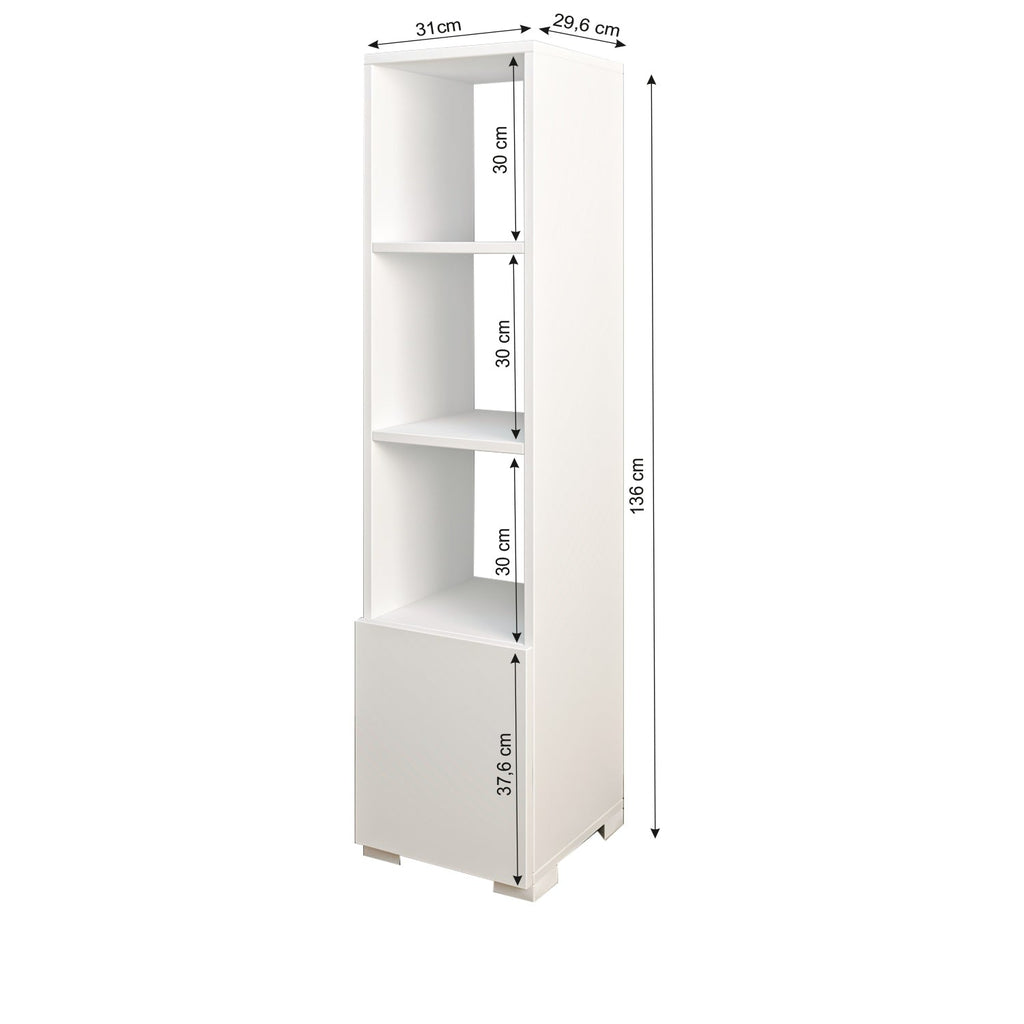 Das Kuzey Bücherregal überzeugt durch sein modernes Design und kompakte Maße, perfekt für kleine Räume. Die elegante weiße Farbe passt sich harmonisch jedem Einrichtungsstil an. Mit drei offenen Regalen und einem unteren, geschlossenen Fach bietet es ausreichend Platz für Bücher, Akten oder dekorative Elemente und sorgt für Ordnung und Übersicht. Ideal für Jugendzimmer, Arbeitszimmer oder Büros.